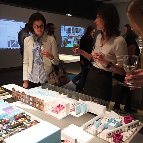 Exhibition design at the Université de Montréal showcasing the various models and modes of explorations for five ongoing projects at Provencher_Roy.